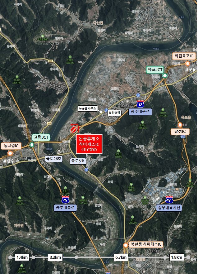 [세종타임즈] 달성군 논공읍 주민들이 그동안 고속도로를 이용하기 위해 인근 시·군까지 이동해야 했던 불편이 해소된다. 국토교통부는 광주-대구 고속도로 논공휴게소에 일방향 하이패스IC*를 신설하는 고속도로 연결허가를 승인했다.