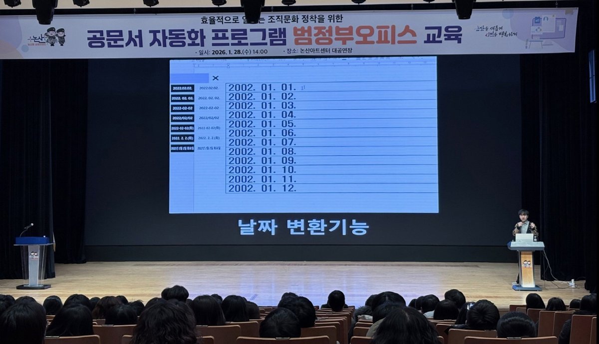 [세종타임즈] 논산시는 지난 28일 논산아트센터 대공연장에서 저연차 공무원을 대상으로 공문서 자동화 프로그램‘범정부오피스’교육을 실시했다.