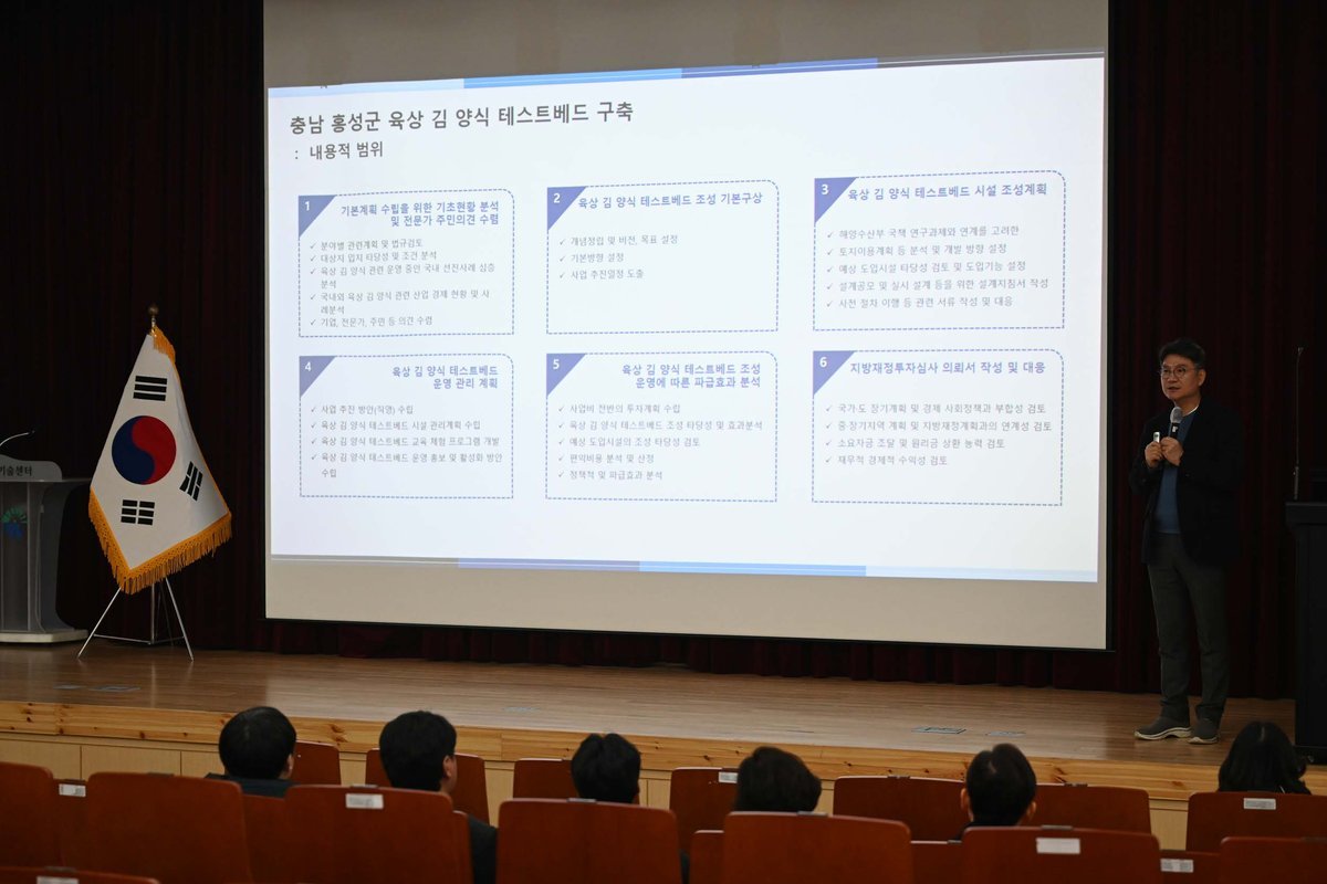 [세종타임즈] 홍성군은 충청남도 균형발전사업과 해양수산부 국책과제와 연계해 추진 중인 육상 김 양식 테스트베드 조성 사업과 관련해, 기본계획 수립을 위한 주민설명회를 지난 29일 홍성군 농업기술센터에서 개최했다고 밝혔다.