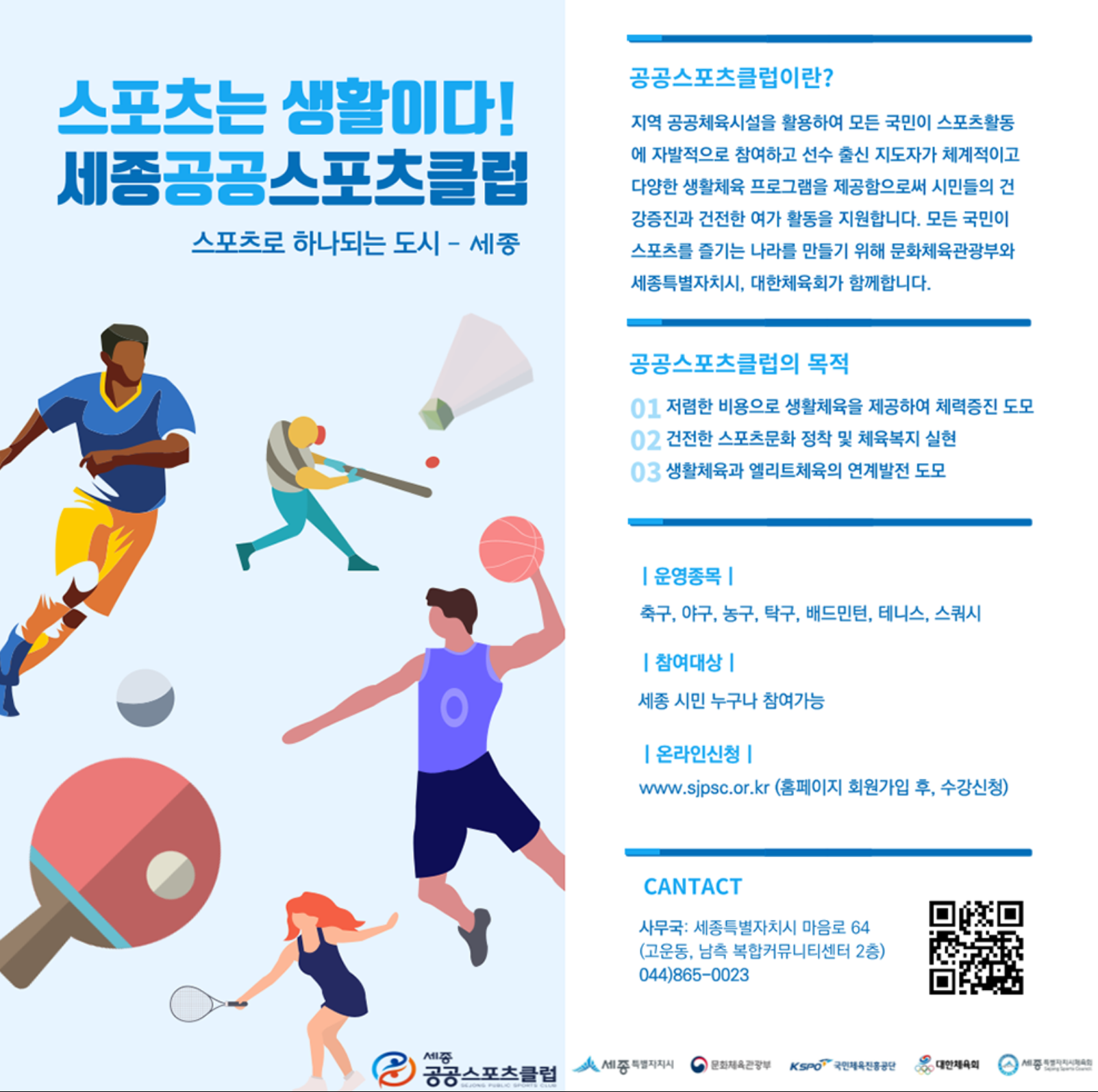 한편 세종시체육회는 지정스포츠클럽 사업을 꾸준히 추진하며 지역 여건에 맞는 종목 발굴과 운영 지원에 힘써 왔으며, 향후에도 생활체육 저변 확대와 지역 체육 생태계 구축을 위한 정책 사업을 지속적으로 추진할 계획이다.