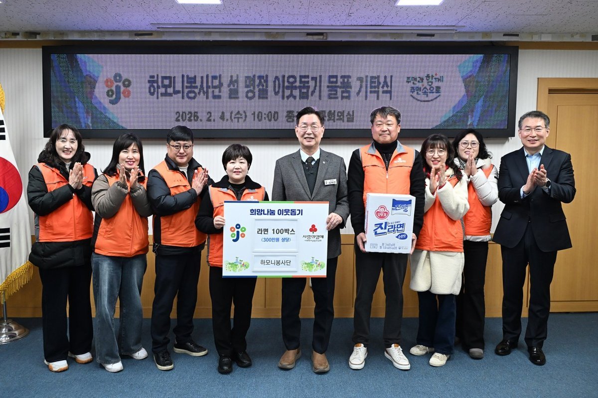 [세종타임즈] 대전 중구는 4일 설 명절을 앞두고 하모니봉사단으로부터 라면 100박스를 기탁받았다고 밝혔다.