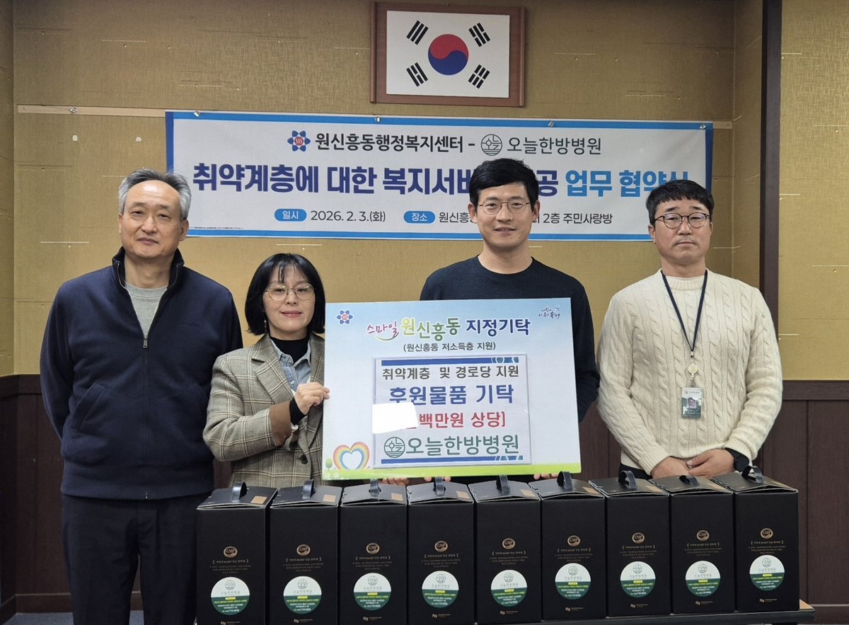오늘한방병원은 원신흥동에서 선정한 대상자의 건강·위생 관리와 개선을 위해 음식 제공 등 다양한 복지서비스를 지원하고 기부를 포함한 지속적인 나눔 활동을 하게 된다.