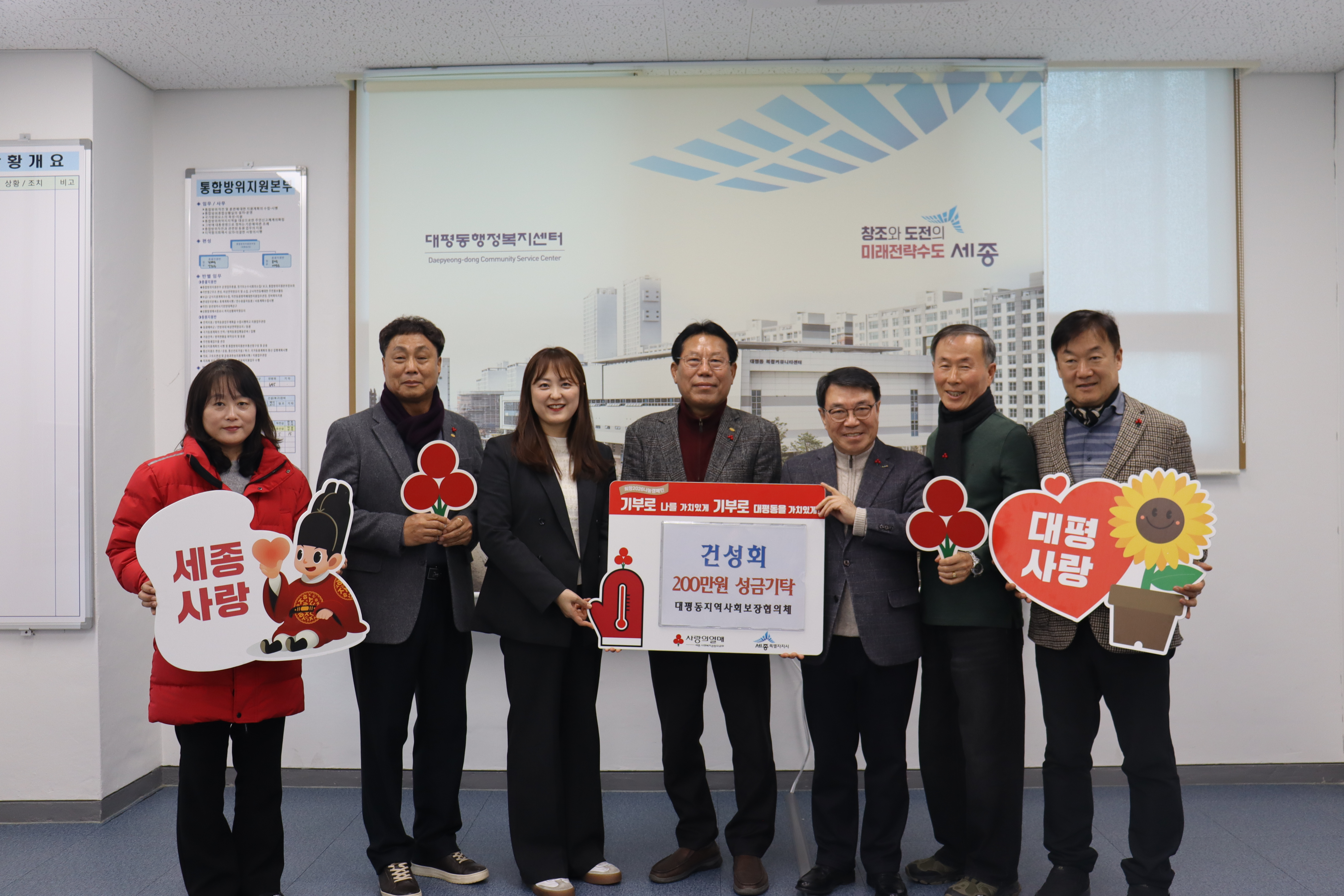[세종타임즈] 세종시 대평동지역사회보장협의체가 5일 건설업체 대표 사모임 건성회로부터 이웃돕기성금 200만원을 전달받았다고 밝혔다.