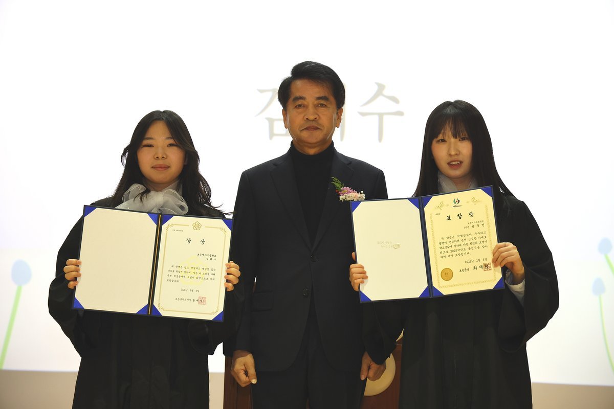 이날 군수는 성실한 학교생활로 타의 모범이 된 성우인 학생에게 표창장을 전수하고 졸업생들에게 따뜻한 축하와 응원의 메시지를 전했다.