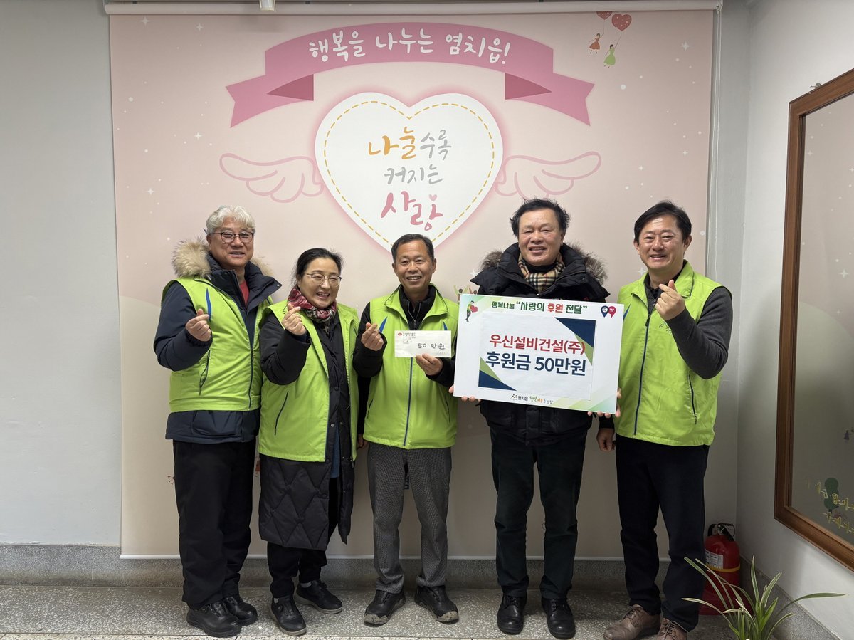 심용근 염치읍장은 "이번 후원은 지역사회에 큰 힘이 되는 나눔"이라며 "어려운 이웃을 위해 후원해 주신 우신설비건설에 진심으로 감사드린다"고 밝혔다.