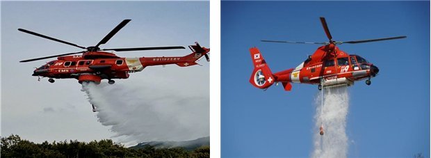 [1단계: 신속 대응] 배치 초기인 2월 9일부터 26일까지는 기동성이 뛰어난 충청·강원119항공대의 ‘AS365N2’ 헬기를 투입해 초기 화재 진압에 주력한다.