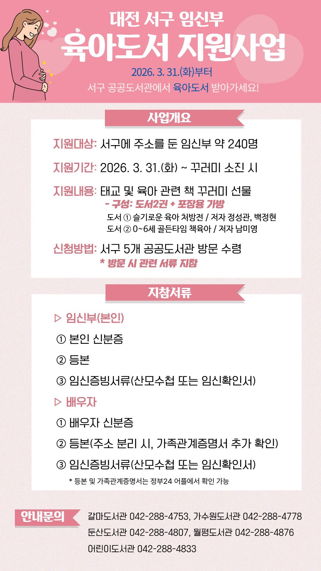 [세종타임즈] 대전 서구 공공도서관은 3월 31일부터 '임신부 육아 도서 지원사업'을 운영한다.