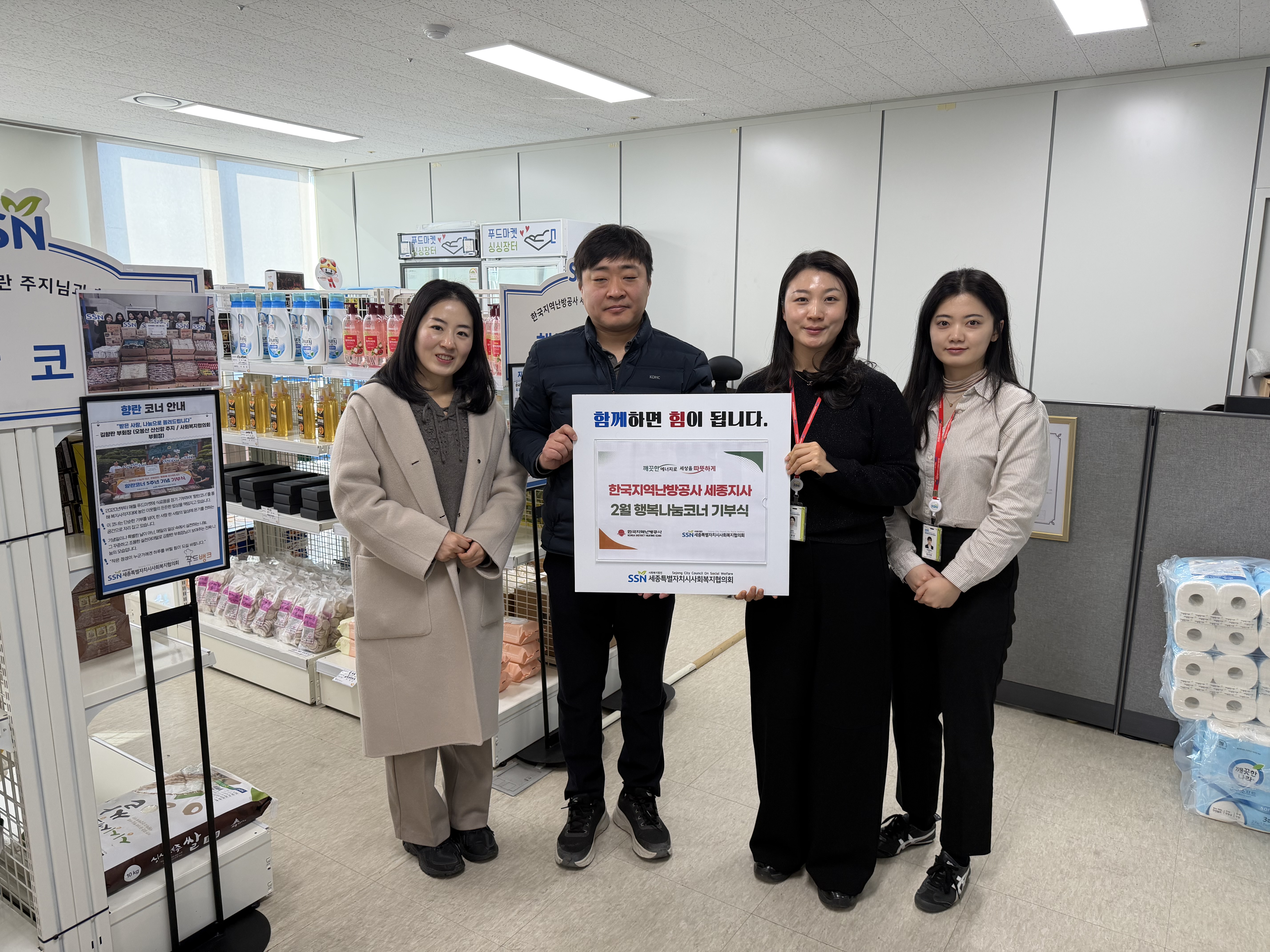 ‘행복나눔코너’는 지난 2023년 4월 한국지역난방공사 세종지사와 협의회가 함께 조성한 전용 나눔 공간으로, 임직원과 기관의 자발적인 기부로 마련된 식료품과 생필품을 비치해 이용자들이 필요한 물품을 직접 선택할 수 있도록 운영되고 있다.