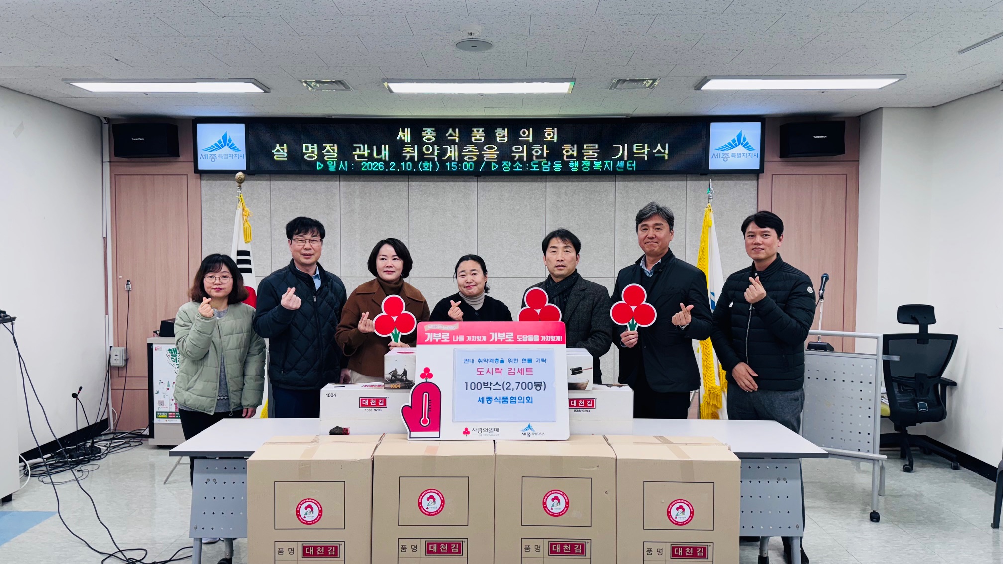 도시락 김세트로 구성된 기탁품은 도담동지사협 민관협력 특화사업 ‘우리동네 냉장고’와 연계, 관내 취약계층에 전달될 예정이다.
