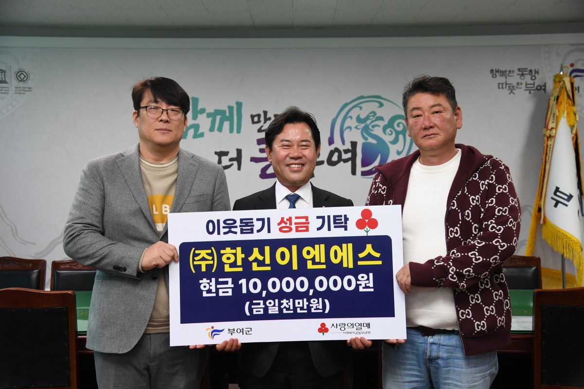 [세종타임즈] ㈜한신이엔에스는 부여군청을 방문해 관내 소외된 이웃을 위한 사랑의 성금 1000만원을 전달했다고 10일 밝혔다.