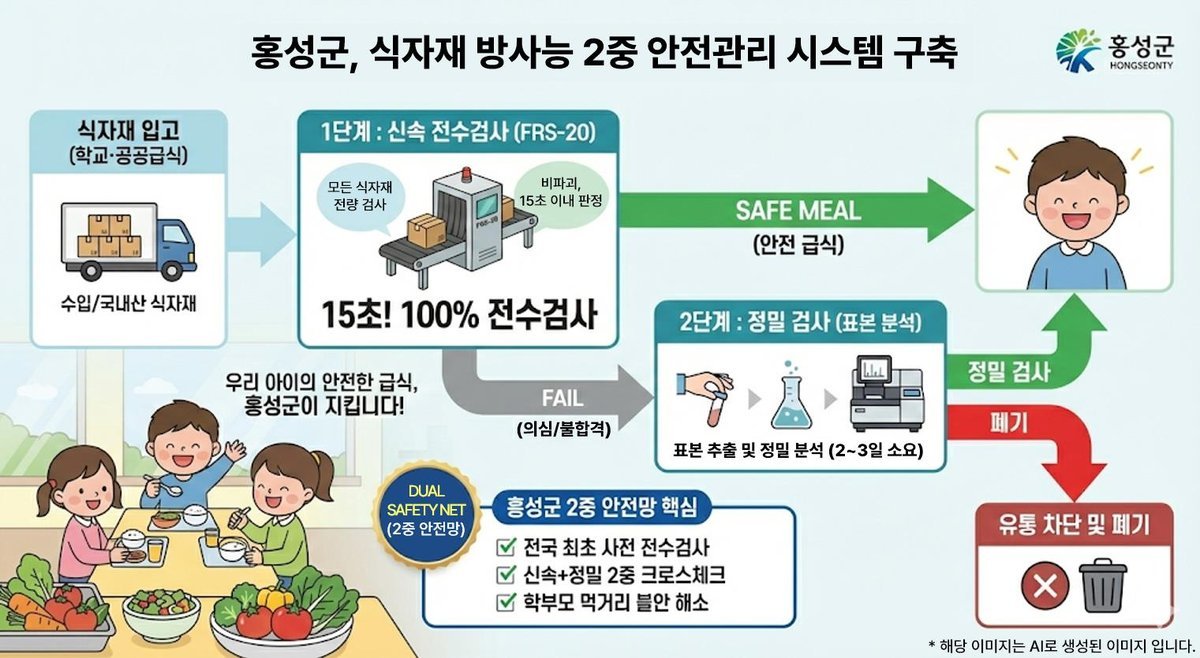 학교 및 공공급식에 공급되는 식자재의 방사능 안전성을 강화하기 위해 홍성군은 조달청이 주관하는 혁신제품 시범구매사업을 통해 식품 방사능 신속 검사장비를 전국 최초로 도입했다고 밝혔다.