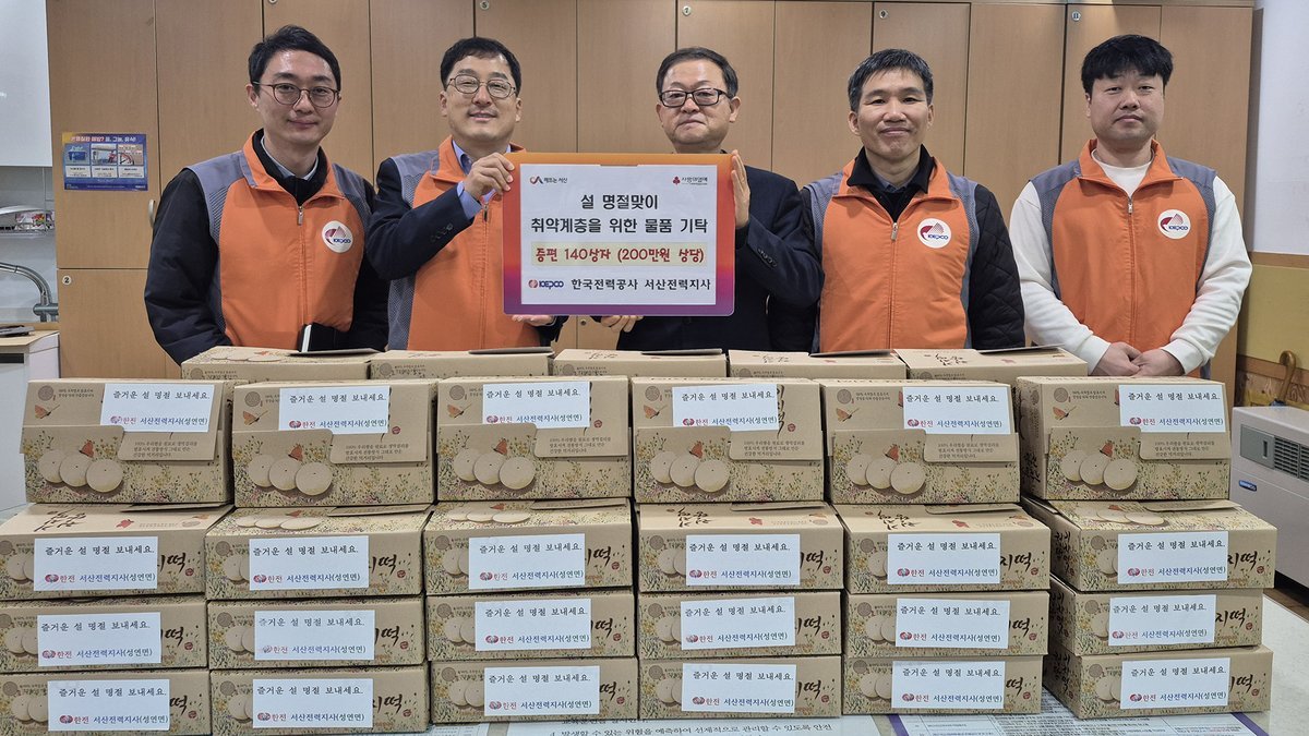 [세종타임즈] 한국전력공사 서산전력지사에서는 설 명절을 맞아 지역 내 어려운 이웃에게 전달해 달라며 10일 서산시종합사회복지관에 증편 140박스를 기부했다.