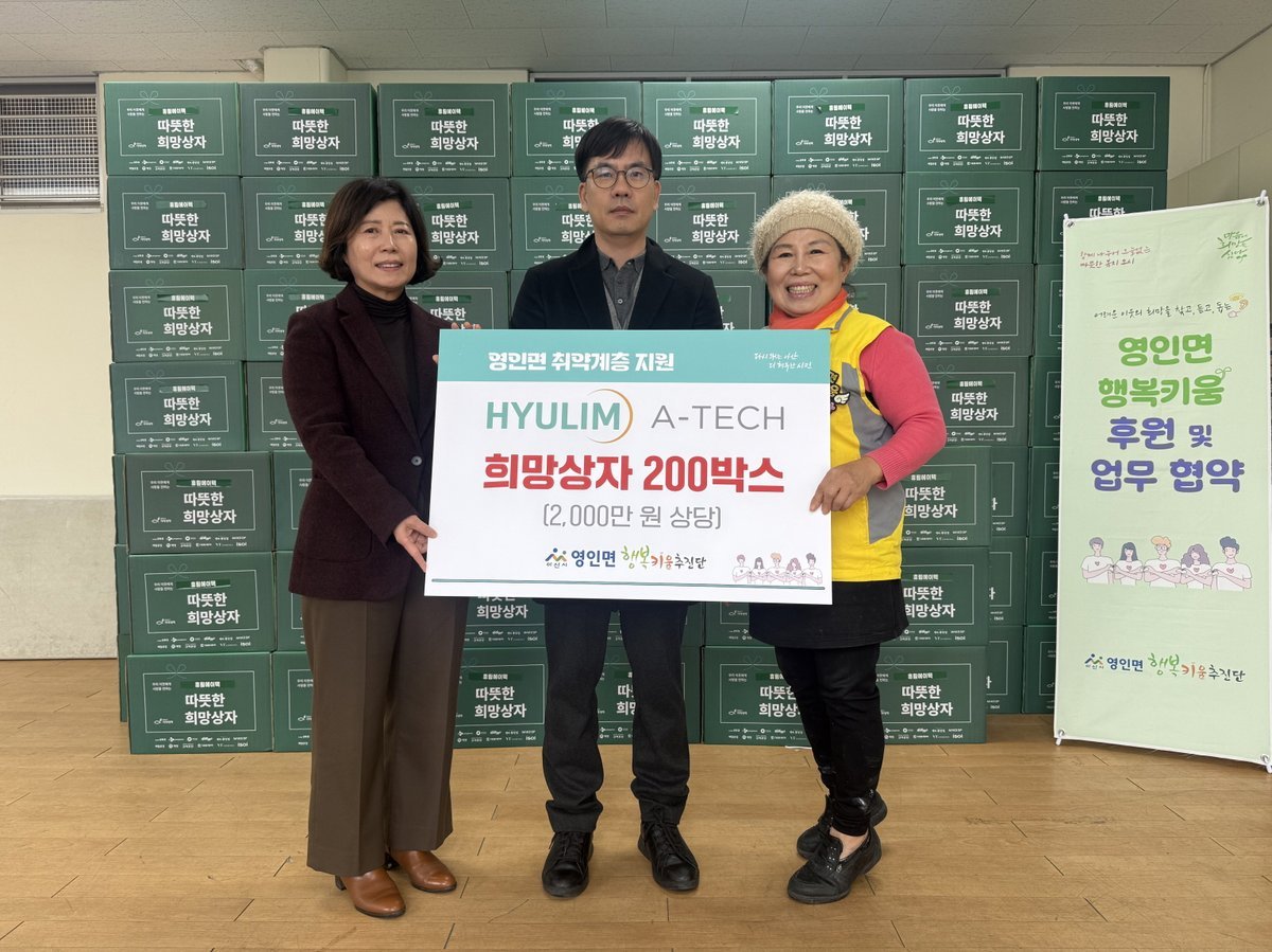 휴림에이텍 영인공장 손상호 부장은 "설을 맞아 지역 어르신들과 이웃들에게 작은 정성을 전할 수 있어 기쁘다"며 "희망상자가 이웃들에게 따뜻한 선물이 되길 바란다"고 전했다.