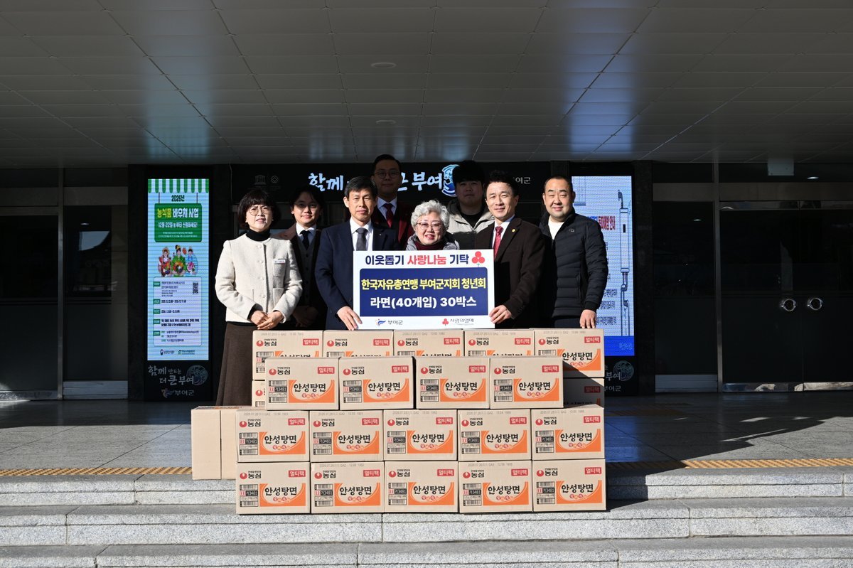 [세종타임즈] 한국자유총연맹 부여군지회 청년회는 설 명절을 맞아 관내 취약계층을 지원하기 위해 라면 30박스를 부여군에 기탁했다고 12일 밝혔다.