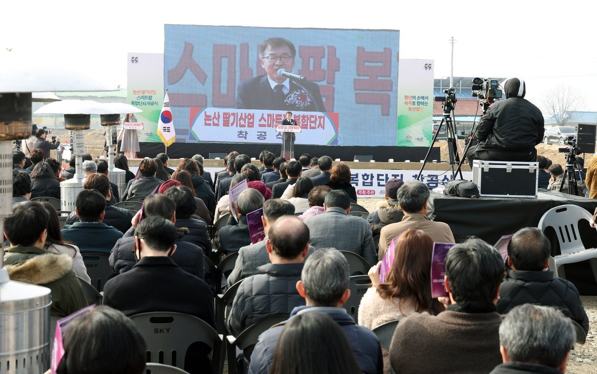 도는 13일 논산시 부적면 마구평리 일원에서 전형식 정무부지사와 청년농업인 등 300여 명이 참석한 가운데 ‘논산 딸기산업 스마트팜 복합단지’ 착공식을 개최했다.