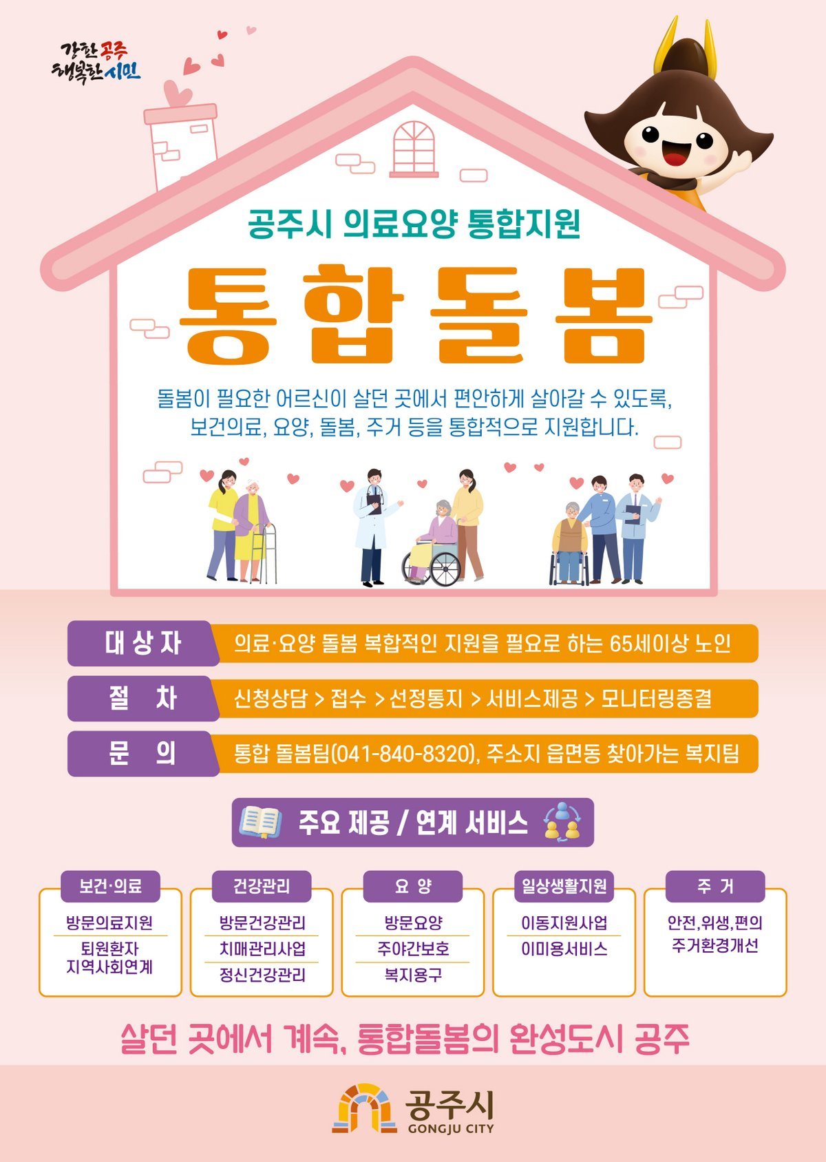 이를 위해 공주시는 통합돌봄팀을 신설하고 관련 조례를 제정하는 등 제도적 기반을 마련했다.