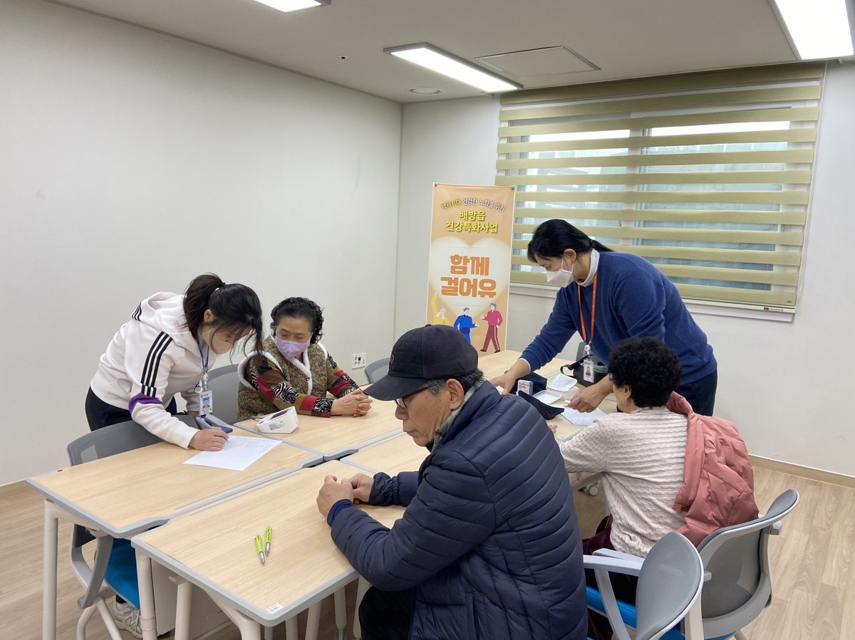 복지관 이용 어르신 대부분이 고혈압·당뇨를 앓고 있는 점을 고려해 지난달 목표 걸음 수 달성도와 생활 습관 개선도에 대한 개별 상담을 진행했으며 혈압·혈당 측정도 함께 실시해 건강 상태를 점검했다.