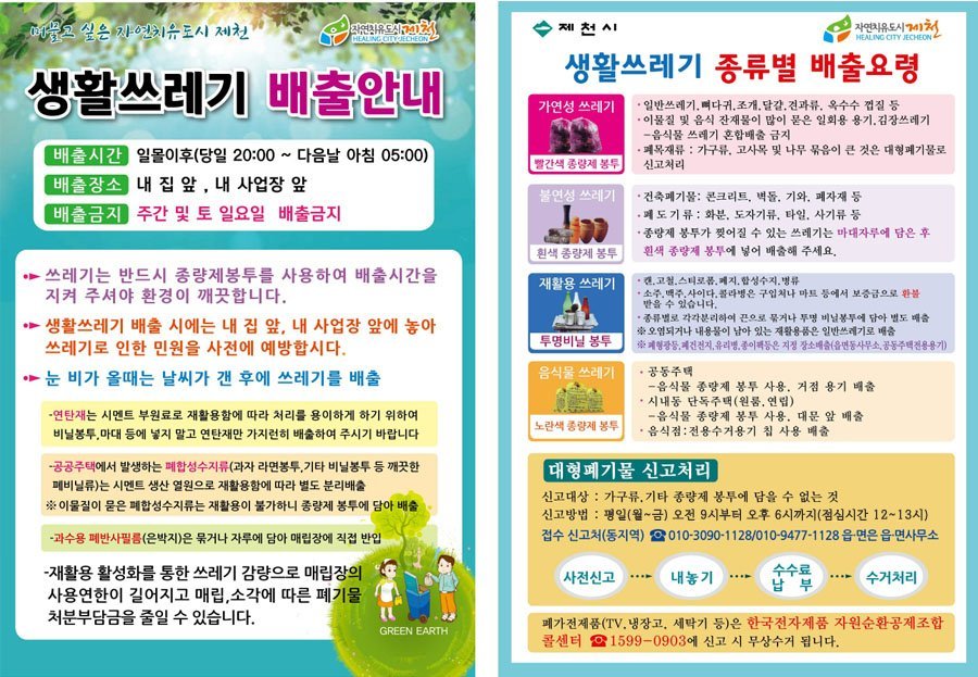 [세종타임즈] 제천시는 주민들의 올바른 생활쓰레기 배출과 재활용 활성화를 위해 생활쓰레기와 재활용품, 대형폐기물의 배출 요령을 안내했다.