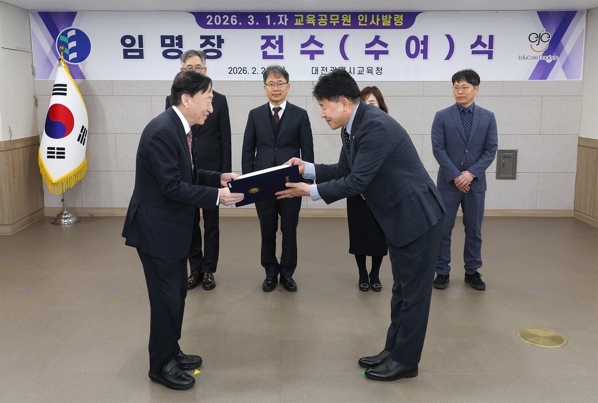 [세종타임즈] 대전시교육청은 2월 24일 시교육청 701호에서 2026년 3월 1일자 인사발령에 따른 ‘교육공무원 임명장 전수 및 수여식’을 개최했다.