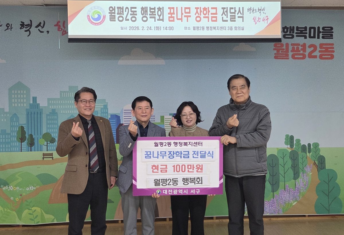 [세종타임즈] 대전 서구 월평2동 행정복지센터는 동 청사에서 ‘행복한 마을 만들기 운영위원회’와 함께 새 학기를 맞은 아이들을 위한 장학금 전달식을 진행했다고 25일 밝혔다.