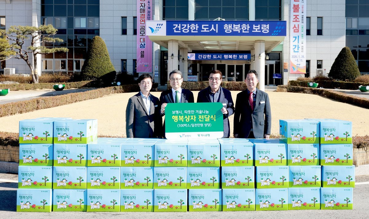 [세종타임즈] 보령시는 지역 내 취약계층의 겨울나기를 지원하기 위해 하나은행 대천지점과 ‘온기나눔 행복상자’전달식을 25일 시청광장에서 개최했다.