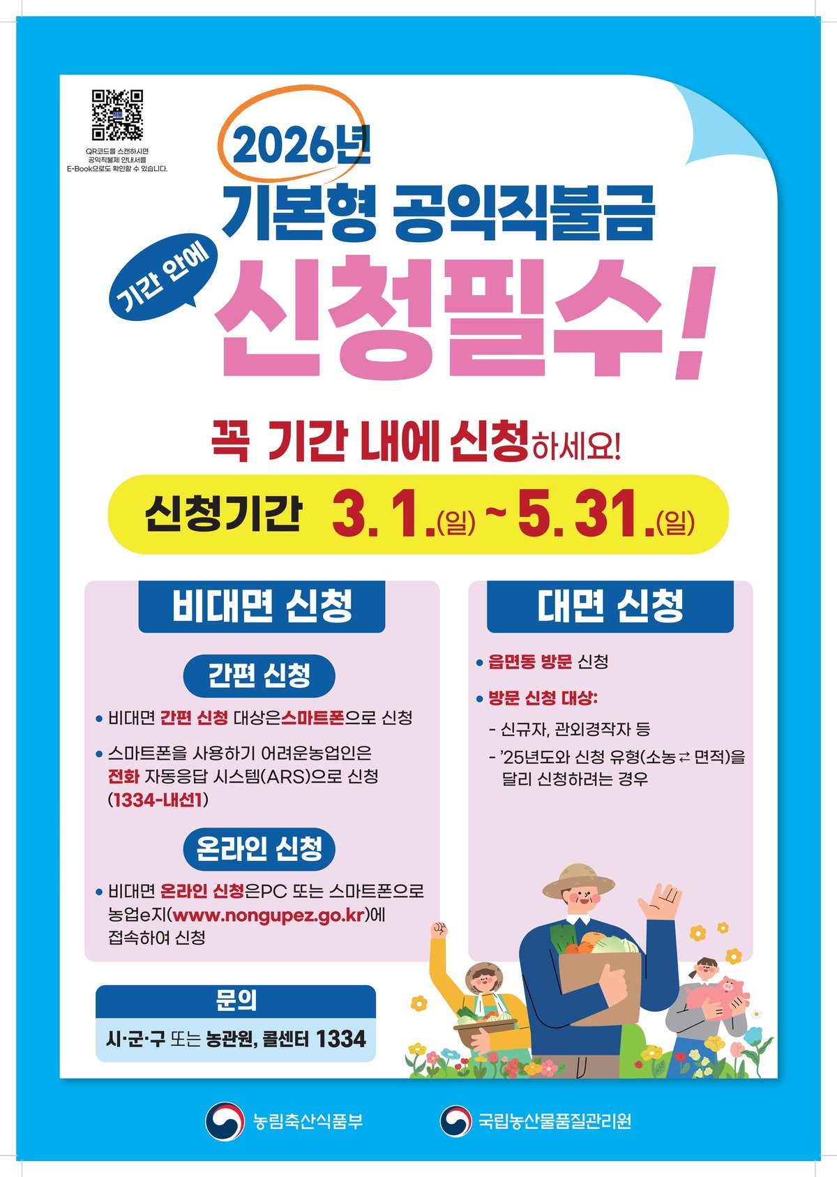 [세종타임즈] 충북 영동군은 3월 1일부터 5월 31일까지 ‘2026년도 기본형 공익직접지불금’등록 신청을 받는다.