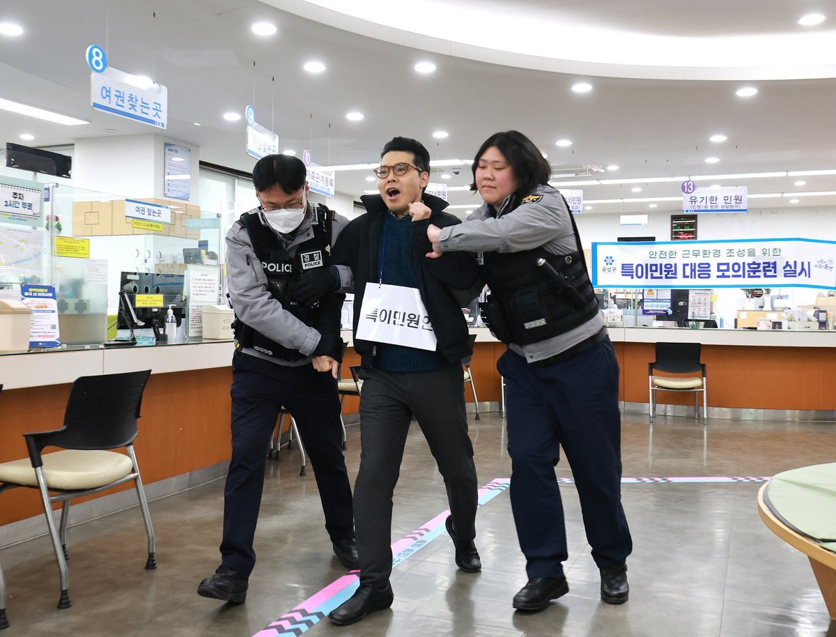 정용래 유성구청장은 “민원 현장에서 발생하는 폭언·폭행은 공무원과 민원실을 찾은 주민의 안전까지 위협하는 중대한 사안”이라며 “정기적인 모의훈련과 보호 장비를 확충해 안전한 민원 환경을 조성하겠다”고 말했다.