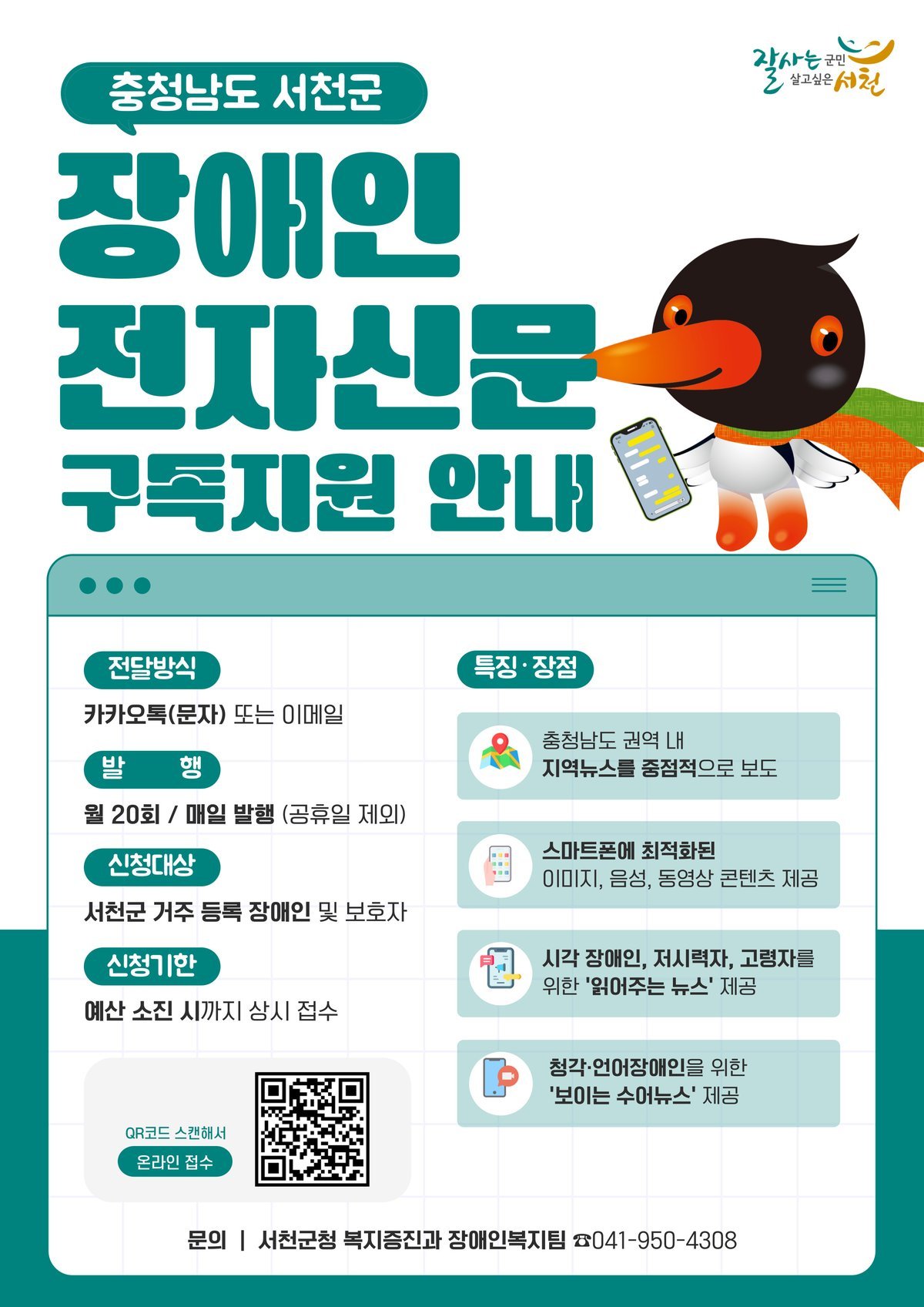[세종타임즈] 서천군은 정보 취약계층인 장애인의 정보 접근성 향상과 알권리 보장을 위해 ‘장애인 전자신문 구독 지원사업’을 오는 3월부터 본격 시행한다.