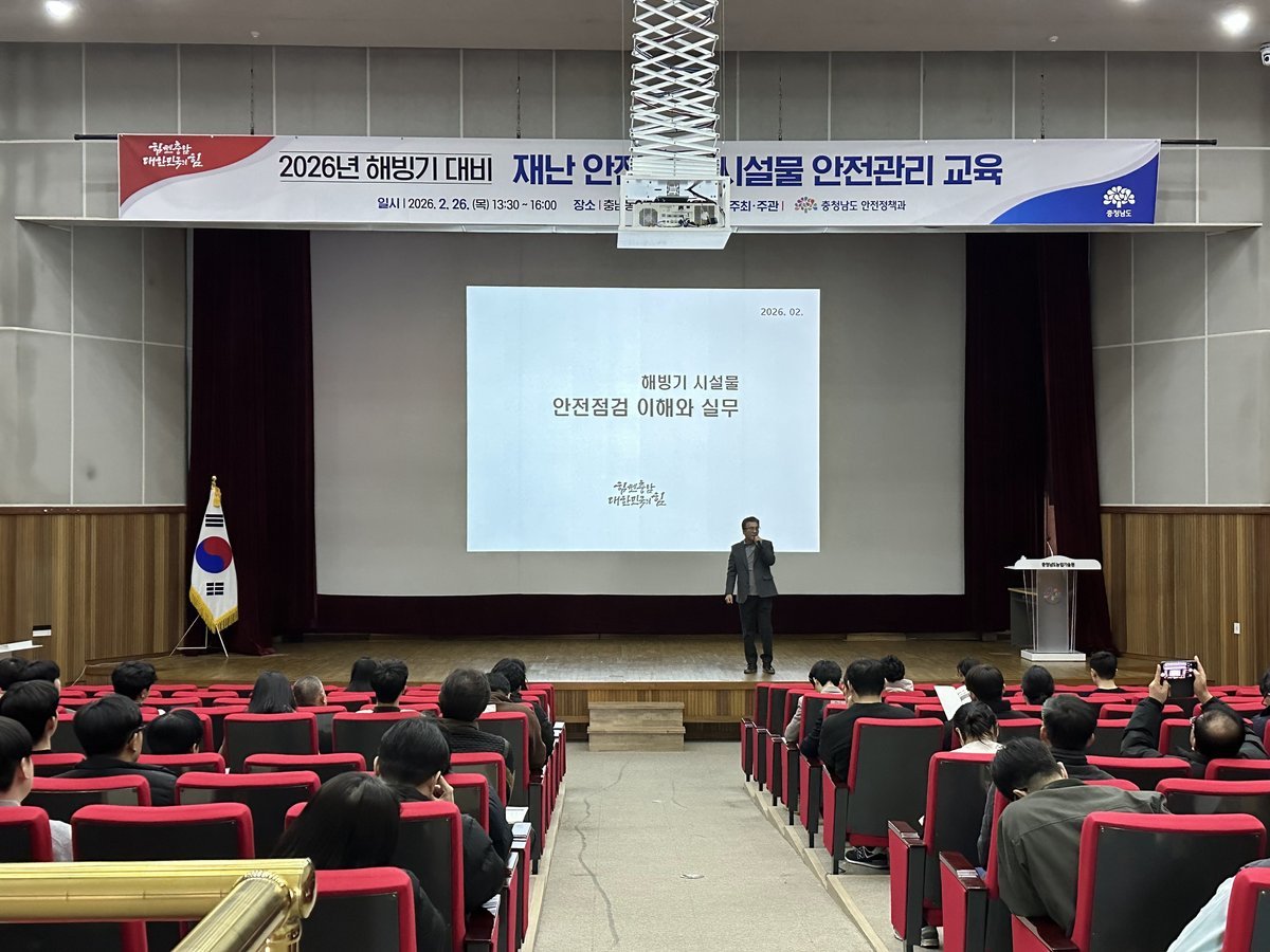 [세종타임즈] 충남도는 26일 도 농업기술원 교육관에서 도·시군과 민간의 시설물 안전점검 및 관리 담당자 160여 명을 대상으로 해빙기 취약시설 안전 관리 교육을 실시했다.