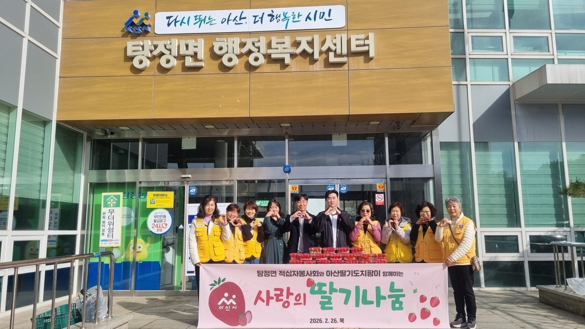 [세종타임즈] 아산시 탕정면은 26일 탕정면 행정복지센터에서 탕정면 적십자봉사회와 아산딸기도치팜이 함께하는 사랑의 딸기나눔 행사 를 개최했다.