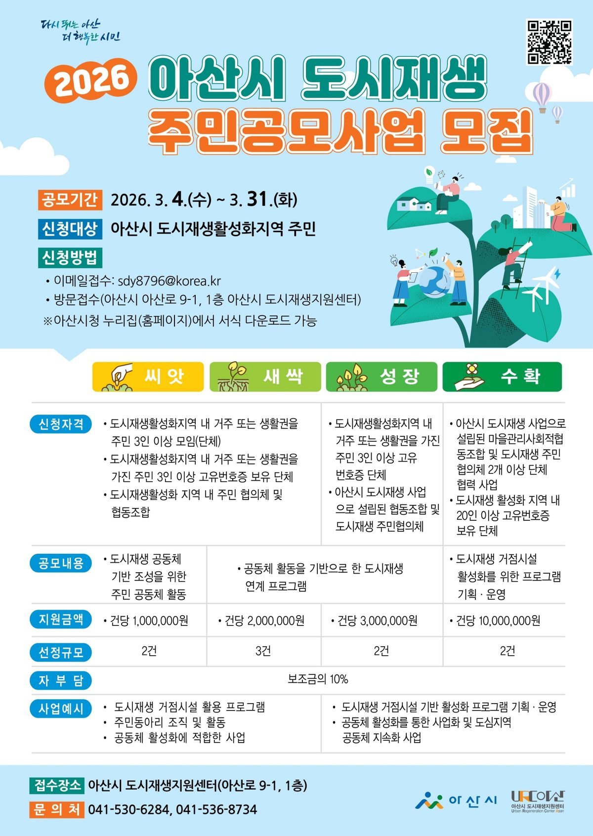 [세종타임즈] 아산시는 주민 주도의 지역 활성화 기반을 확대하기 위해 2026년 아산시 도시재생 주민공모사업 신청을 오는 3월 4일부터 3월 31일까지 접수한다고 밝혔다.