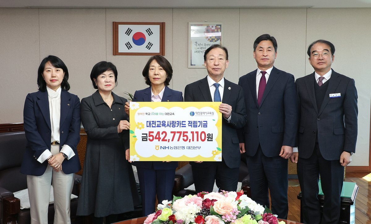 [세종타임즈] 대전시교육청은 지난해 각급 학교와 산하기관 및 교직원이 대전교육사랑카드를 사용하여 모은 적립금 5억 4,200만 원을 3월 4일 NH농협은행 대전본부로부터 전달받았다고 밝혔다.