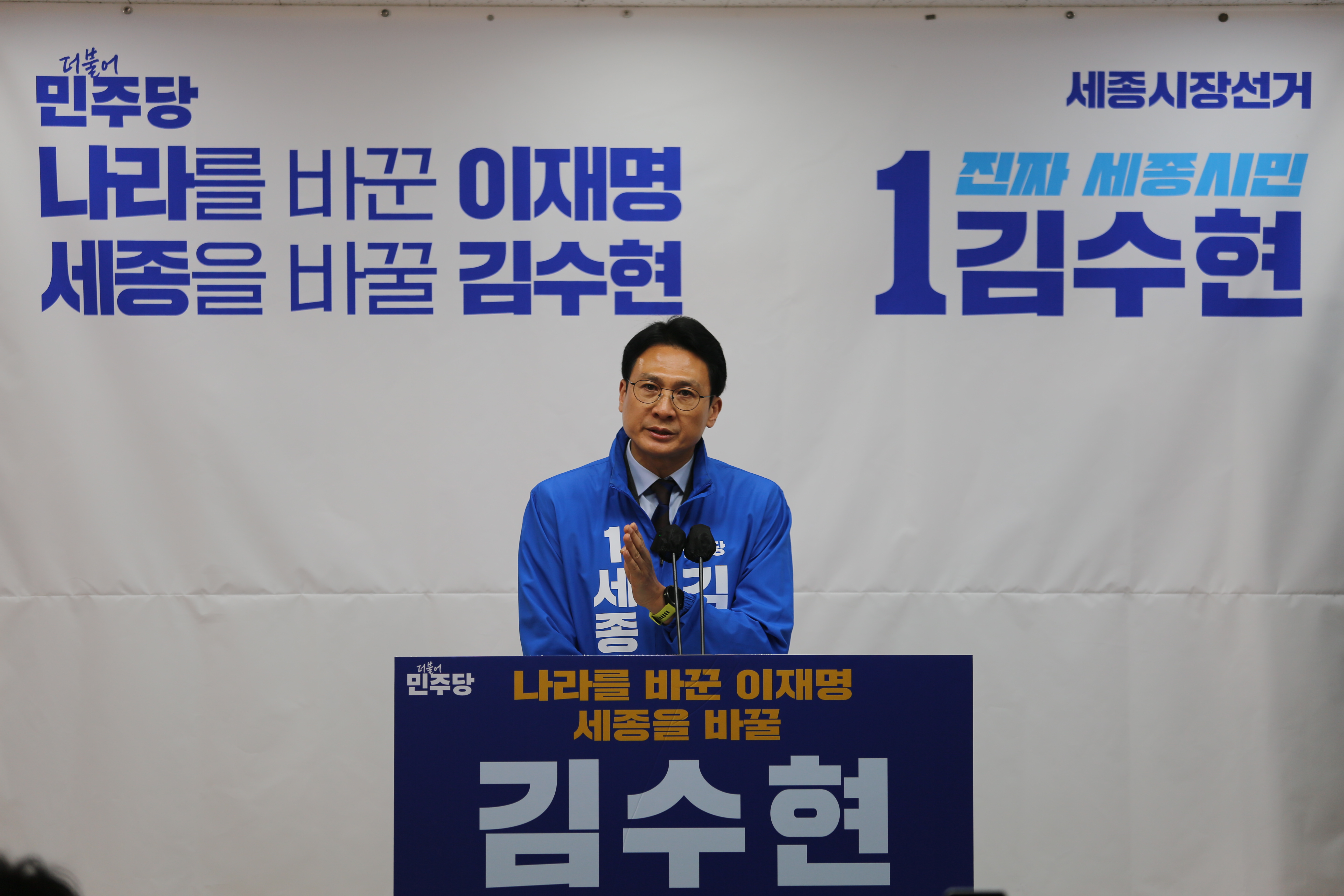 [세종타임즈] 김수현 세종시장 예비후보(더불어민주당 당대표 특보)가 4일 세종시청 브리핑룸에서 기자회견을 열고 조치원 일대를 글로벌 경제 거점으로 재편하는 ‘세종 조치원 뉴시티(New-City) 프로젝트’를 발표했다.