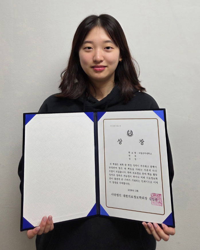 국립공주대학교에 따르면 김연주 학생은 지난 2월 보건의료정보학 분야 학술 활동과 연구 성과를 인정받아 대한의료정보학회장상을 받았다.