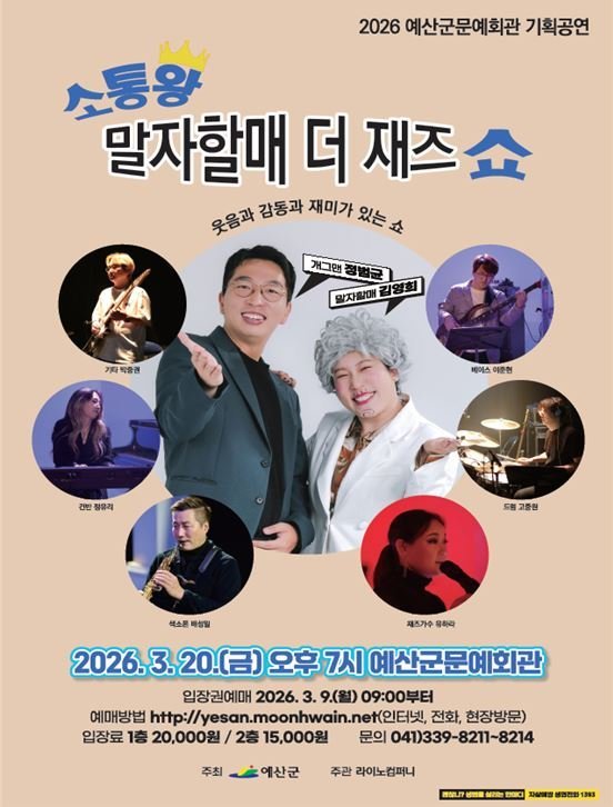 [세종타임즈] 예산군은 오는 3월 20일 저녁 7시 문예회관 공연장에서 ‘소통왕 말자할매 더 재즈 쇼’토크 콘서트를 개최한다고 밝혔다.