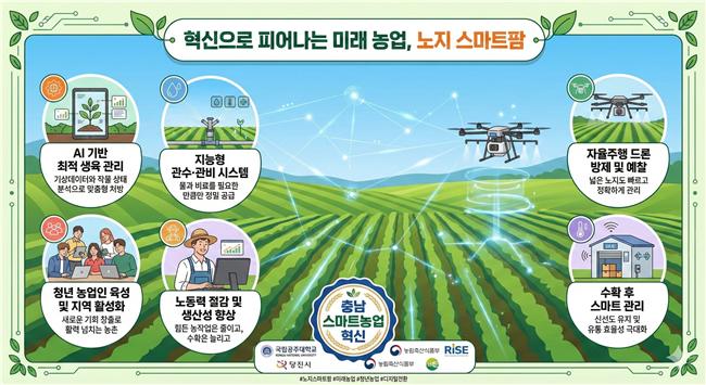 국립공주대학교는 식물자원학과 스마트미래농업교육연구센터가 농림축산식품부 주관 ‘2026년 노지 스마트농업 육성지구’ 공모사업에 최종 선정됐다고 밝혔다.