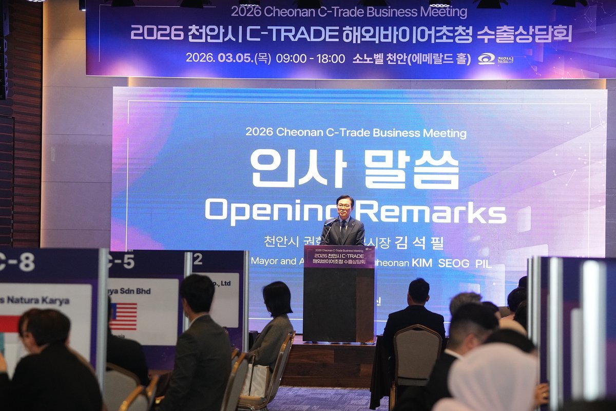 1. 천안시는 지난 5일 소노벨 천안에서 ‘2026천안시 C-TRADE 해외바이어 초청 수출상담회’를 개최했다.