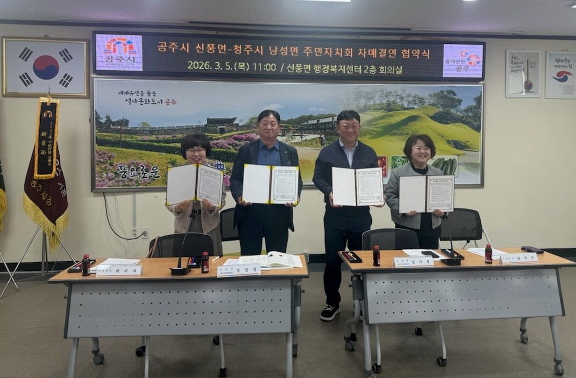[세종타임즈] 공주시 신풍면은 지난 5일 신풍면 주민자치회와 청주시 낭성면 주민자치위원회가 자매결연 협약을 체결했다고 밝혔다.