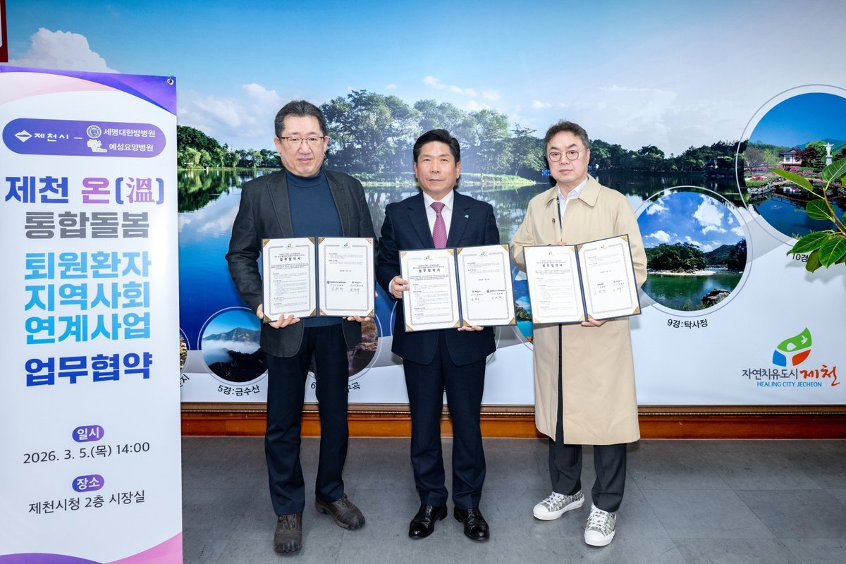 [세종타임즈] 제천시는 지난 5일 세명대학교 부속 한방병원, 예성요양병원과 함께‘제천 온 퇴원 환자 지역사회 연계사업’추진을 위한 업무협약을 체결했다고 밝혔다.