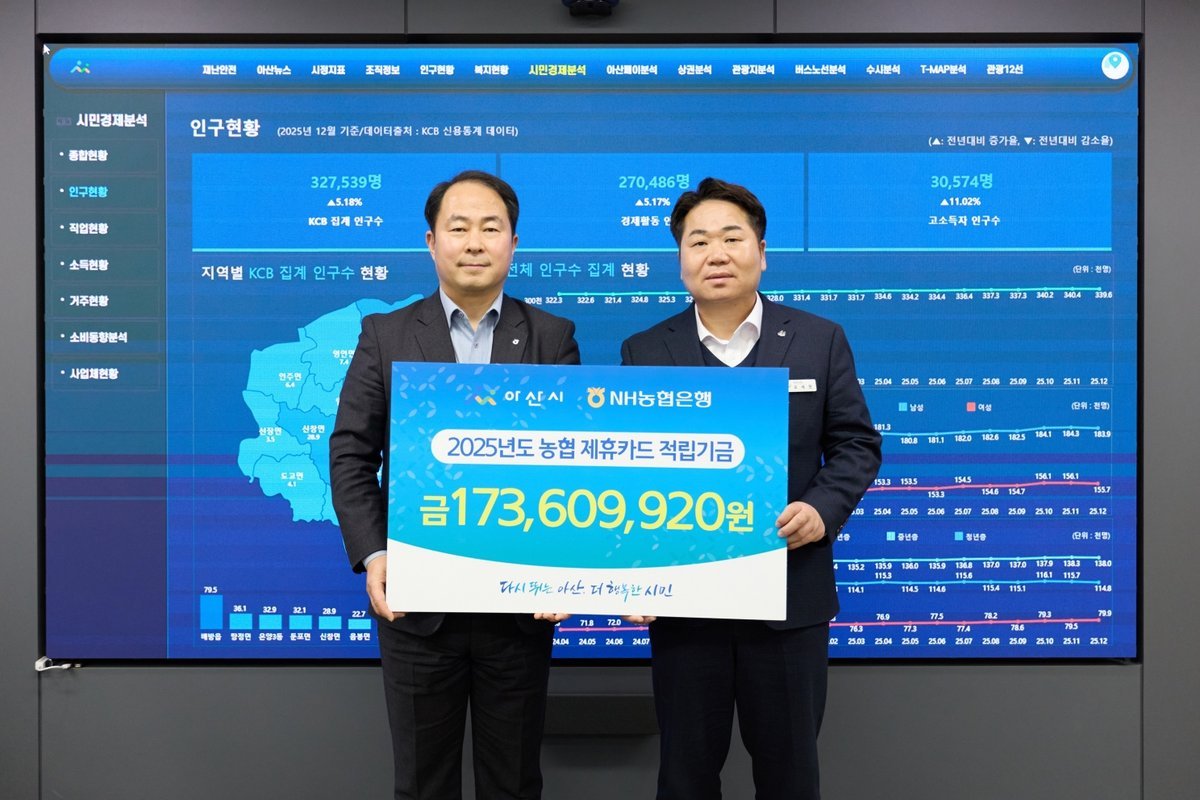 이번 기금은 아산시와 NH농협은행 간 협약에 따라 지난해 1년간 시 법인카드, 보조금 카드, 공무원 복지카드 등의 사용액 일부를 포인트로 적립해 조성됐다.