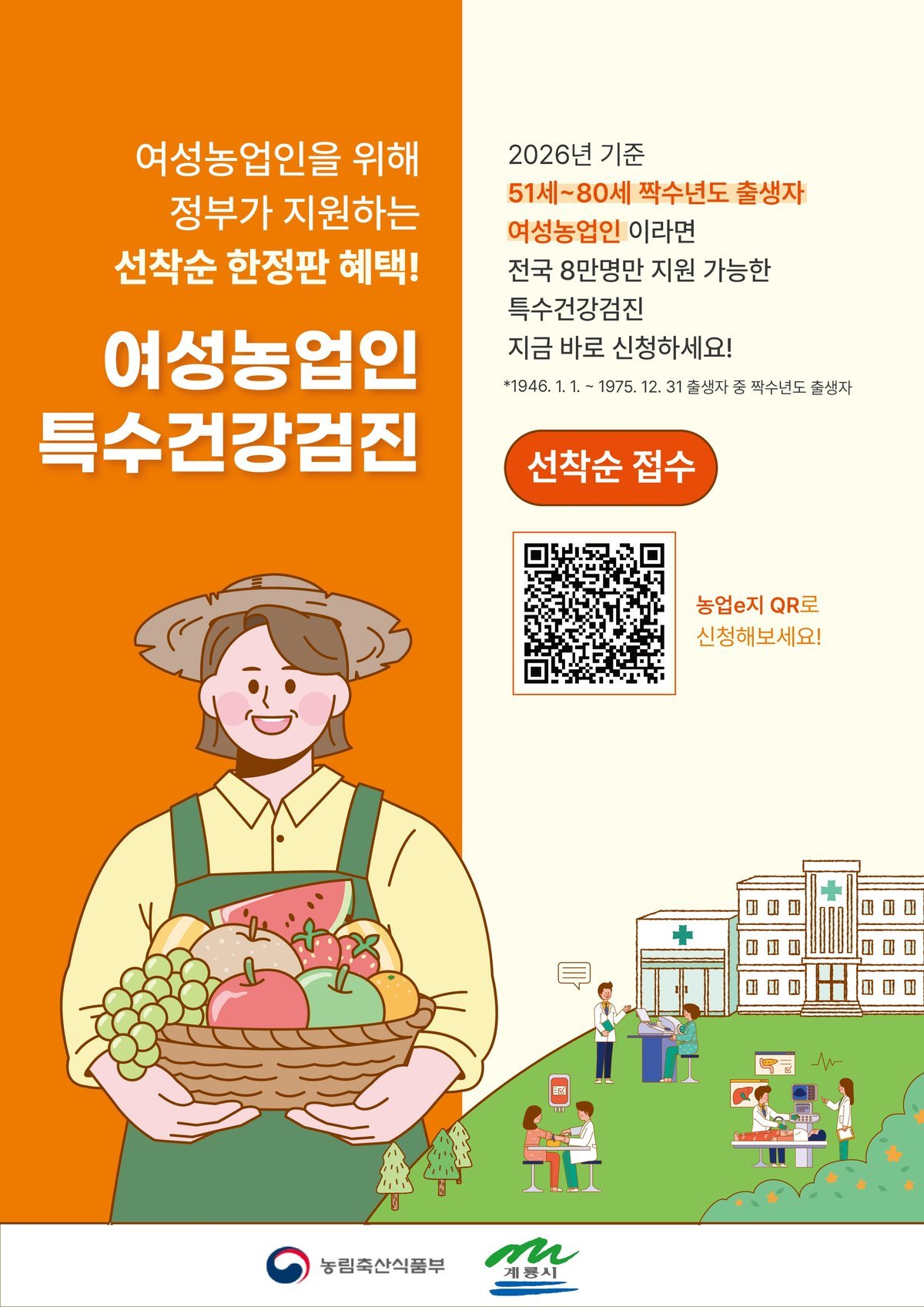 시 관계자는 “여성농업인 건강검진은 지역 농업인의 건강 증진과 삶의 질 향상을 위한 중요한 사업”이라며 “농업 현장에서 발생할 수 있는 잠재적인 건강 문제를 조기에 발견하고 예방할 수 있도록 많은 관심과 참여를 바란다”고 말했다.