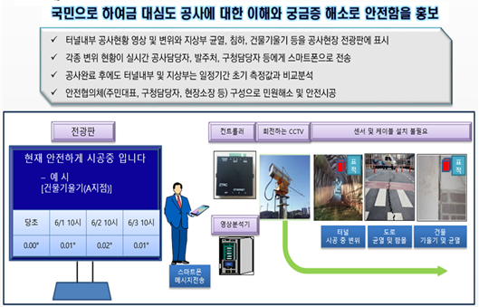 특히 대상작인 하나로팀은 고기능 CCTV를 활용해 터널 내부 공사 현황 및 지상부 균열, 침하, 건물기울기 등의 정보를 실시간 전광판에 표시해 안전하고 투명하게 공사진행상황을 알리는 아이디어로 높은 점수를 받았다.