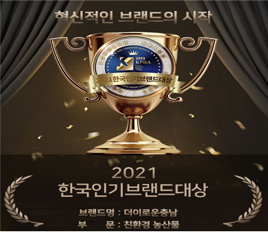 [세종타임즈] 충남도 친환경농산물 광역브랜드인 ‘더이로운충남’이 ‘2021 한국인기 브랜드 대상’에 선정됐다.