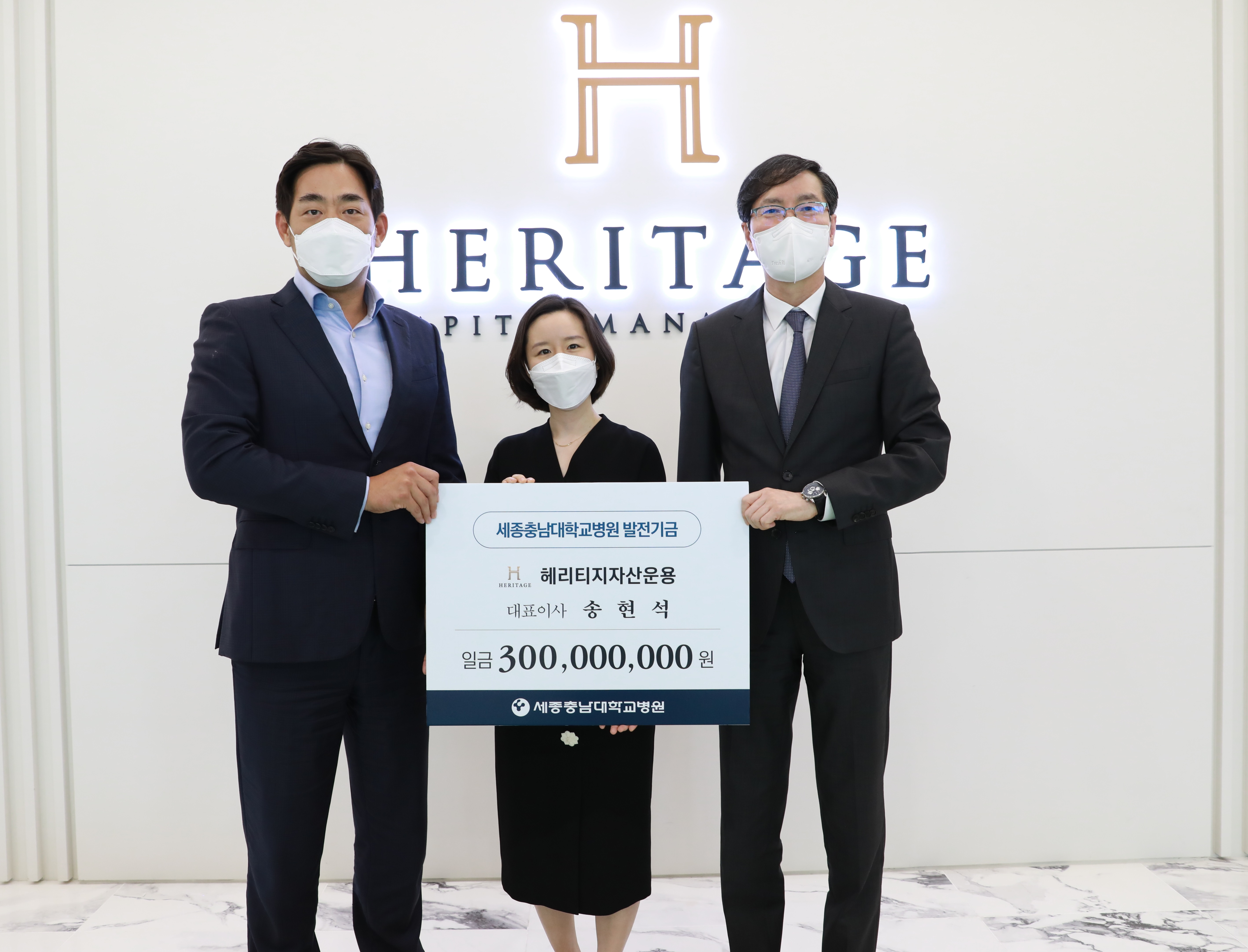 [세종타임즈] 세종충남대학교병원이 15일 헤리티지 자산운용으로부터 발전후원금 3억원을 전달받았다.