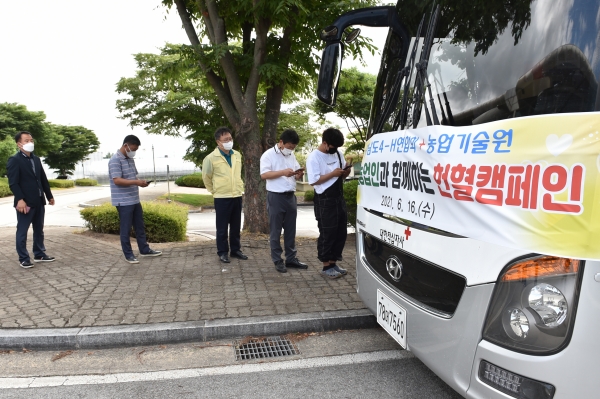 농업기술원 임직원과 4-연합회 청년농업인은 16일 농업기술원에서 헌혈에 동참했다.