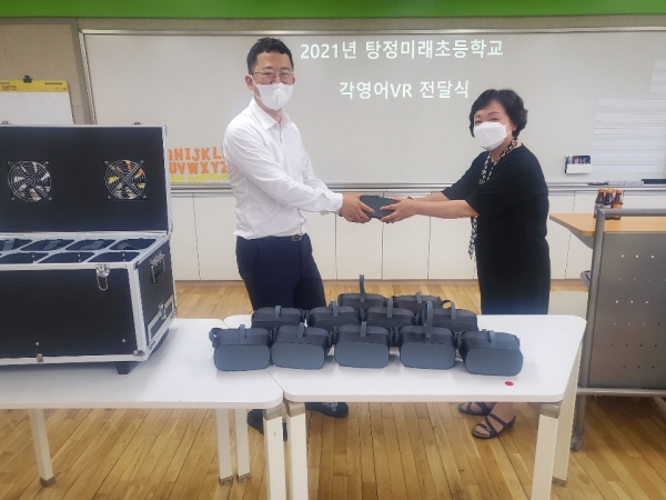[세종타임즈] 아산시는 지난 15일 페어립에듀가 탕정미래초등학교에 1600만원 상당의 ‘각영어’ 16세트를 기증했다고 밝혔다.