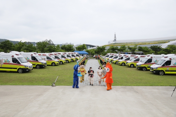 이우성 도 문화체육부지사와 김명선 도의회 의장 등 60여명이 참석한 가운데 연 이날 행사는 사업 경과보고 구급대원 다짐 결의, 임산부 전용 구급차 참관 등의 순으로 진행했다.