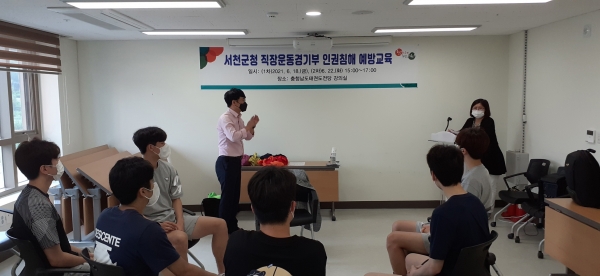 이날 교육은 체육 분야 선수 가혹행위 및 인권침해 사건 발생 등으로 문제점이 발생하는바 체육계 악·폐습을 근절하고 우리군 소속 선수들의 인권 보호를 위해 추진됐으며 서천군 보건소에서 인권교육을 담당하고 있는 심리코칭연구소 C&C 이용희 소장에 의해 이루어졌다.