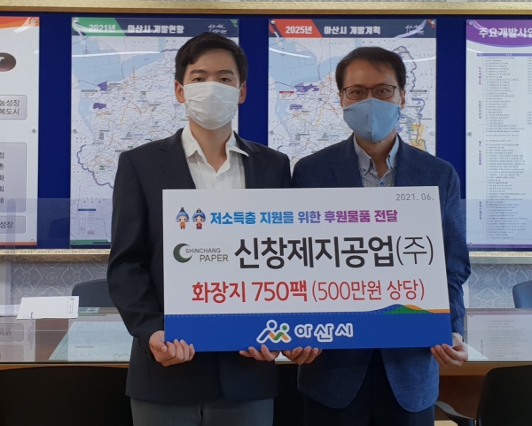 윤찬수 아산 부시장은 " 경기가 어려움에도 불구하고 주위를 돌아보며 후원물품 지원을 해 주시는 신창제지공업에 감사드린다 어려운 이웃에게 잘 전달하겠다“ 고 말했다.