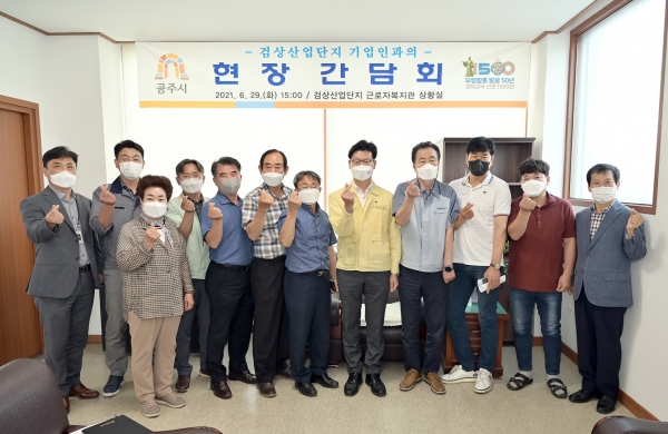 [세종타임즈] 김정섭 공주시장은 지난 29일 올 상반기 마지막 주요 사업장 현장방문지로 검상산업단지를 찾아 기업인과의 간담회 시간을 가졌다.